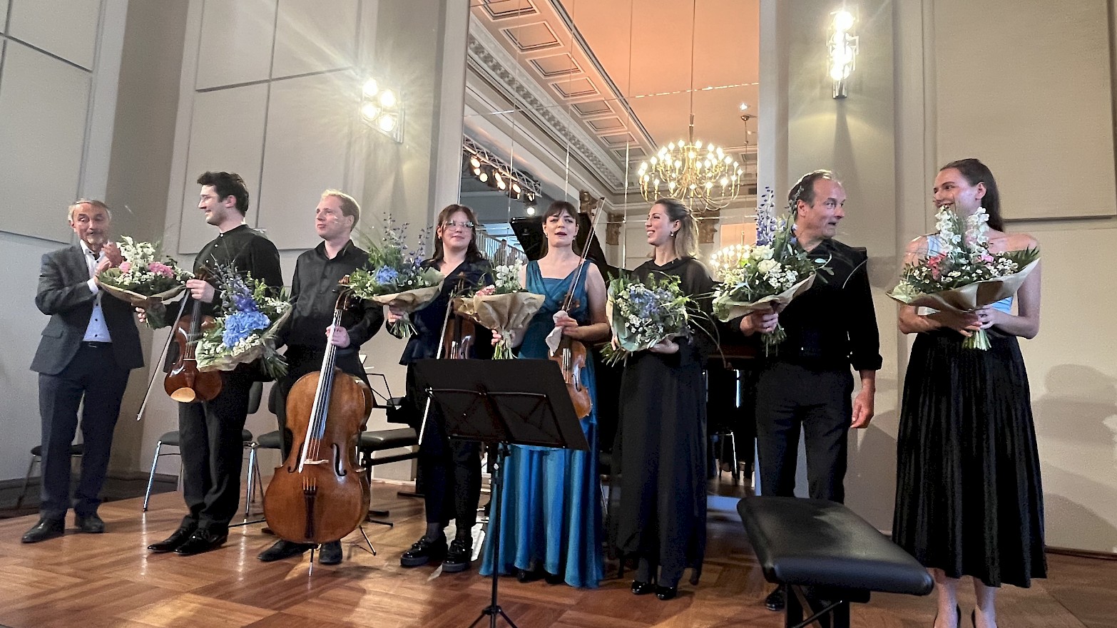 Als Geschenk servierten Musikerinnen und Musiker des Sinfonieorchesters an diesem Vormittag und Mittag einen bunten Strauß an klangvollen Werken, beginnend mit einem eigens arrangierten klassischen Reigen zur Melodie „Happy Birthday“ über Werke von Dmytro Klebanov und Gustav Mahler bis zu Robert Schumann, hier etwa mit seinem Klavierquintett Es-Dur op. 44.